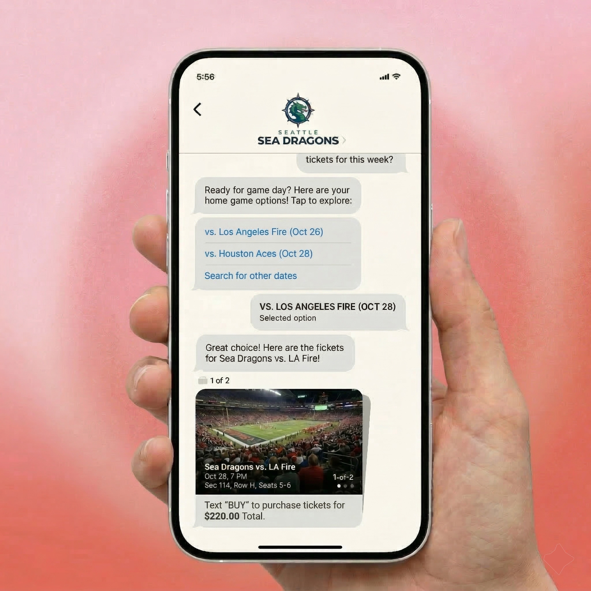Deliver high-resolution images, videos, carousels, and rich cards that showcase games, seats, upgrades, and experiences—turning simple messages into engaging fan interactions.